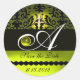 BLACK AND YELLOW DAMASK MONOGRAM, Topaz Classic Round Sticker