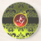 BLACK AND YELLOW DAMASK Red Ruby Monogram Coaster