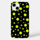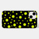Introducing a phone case that blends classic elegance with a touch of whimsy. Against a sleek black background, cheerful yellow polka dots of various sizes dance with playful abandon. This design exudes charm and personality, adding a vibrant pop of colour to your everyday look. Whether you're channeling retro vibes or simply embracing a fun-loving spirit, this phone case is sure to brighten your day with its delightful style.
