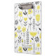 Organise your papers with this Scandinavian-inspired clipboard. It features a yellow and black floral pattern. Personalise by adding your name or short phrase. This floral clipboard will be perfect as a personalised gift. Matching items are available.