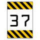 This table card features black and yellow stripes/lines, with the table number in a white centre area.