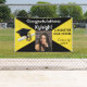 This is an outdoor grade vinyl banner with metal grommets. It can be fully personalised with the student's photo, name, message, class year, and town & school name. It includes matching cap and diploma artwork, which may also be customised.