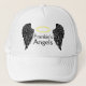 Black angel wings and halo trucker hat featuring the word "Angel" in black and custom text.