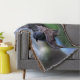 A quality printed throw has its advantages. This is a much finer weave throw than its loopier cousins, and though lighter, it is worth the investment for custom room accessorizing. The back is much prettier than the typical brown, and the fringe on the long sides very vivid, the selvage nicely done. Before photographing, I washed the throw in cold water, delicate, with a thicker woven throw the same size. On tumble dry low, this throw was dry in half the time as the other. This is a very practical quality if you use throws for furniture covers or to wrap up in frequently. The sleekness of the fabric makes it a great layer for accenting or protecting without the feeling of sitting on too much stuff. Perfect for napping or when you feel a light chill coming on. The color printing is beautiful and on this fabric, matched the design and color of my Photoshop image. This is an advantage for blending room fabrics and colors. The fringe on the short sides prints the colors from the design image and therefore varies from the side fringe. I streaked a white fractal line through the plaid pattern to give the illusion of weaving. This printed as crisp as an illusory thread, and put some white in the short side fringe, showing another advantage of print vs loomed- for artistic purposes, line lines, detail, and color integrity can be planned and preserved. My loomed throws have color limitations and more of a needlepoint texture. Print throws reproduce an exact image. The throw felt a little stiff straight out of the package, but this went away in the first delicate wash. Of course I searched the wash water for ink or bleeding and there was none.