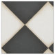 A pattern of black and white diamonds with distressed shading and a vintage feel. In this scale each diamond is approximately 3 1/5" x 3 1/5"