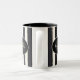 This custom mug has a bronze monogram in an oval frame on a background of broad stripes in black and antique white that can be personalised to display your name, family name, or promote your business.