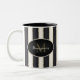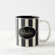 Black & Antique White Stripes Bronze Monogram Two-Tone Coffee Mug