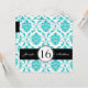 Black, Aqua Blue and White Damask Sweet Sixteen Birthday Invitations. Layout Design by Elke Clarke ©2012. Graphics licensed. Customise with your 16th birthday party details and personal information. This sixteen birthday invitation is a fabulous, girly way to announce your daughter's Sweet 16 birthday celebrations. For other colours of damask please contact designer.
