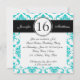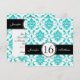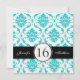 Black Aqua Damask Sweet Sixteen Party Invitation