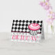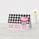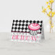 A birthday card featuring a background of black and white argyle. Sheer bottom half features pink trim. Black and pink text reads "Happy Birthday!" Illustration of pink cupcake at right. Inside features sheer argyle background. Look for matching items in the "Birthday Shop" category of The Pink Schoolhouse store.