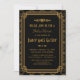 These baby shower invitations feature a black and gold colour palette, a geometric frame, geometric patterns, and other stylistic details all inspired by Art Deco and the roaring twenties. You can customise the sample text fields to your liking.