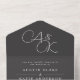 Black Ash White Monogram Script Minimalist QR Cod All In One Invitation