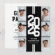 Modern black & white athletic graduation party invitations featuring an eye-catching class year layout in a varsity font, a photo collage of the grad, two white stripes, their name, school, and an easily personalised party invite template, these sporty invites will make your celebration a memorable one.
