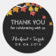 Having a wedding in the fall? This thank you sticker is a perfect addition to your special day. Decorated with vibrant and colourful autumn colours, yellow, orange and brown. Classic and vintage design. Maple leaves falling from the tree. Fall in love again this autumn. Customise and personalise the wording to fit any occasion. Birthday party, anniversary, bridal shower, baby shower, engagement party or anything with autumn theme.