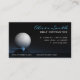 Business two-sided business card with a picture of golf ball and a tee on a black background for use in the golf sector.