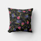Black Background Floral Pink Blue Pattern Design Cushion