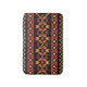 Bold geometric pattern shines against a black background, offering a touch of ethnic charm.