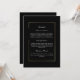 This black background with a gold frame is an enclosure card that provides all the details for your guests. All information is able to be customized and a QR code on the back is available to give your guests the ability to see more information on your website