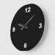 A simple wall clock with a black background and large white numbers marking the 12, 6, 9 and 3. Click Customise It to add your custom text or images, change background colours and more.
