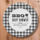 Get ready to celebrate a little bundle of joy with our delightful BBQ baby shower paper plates featuring black typography and black gingham border.