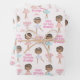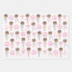 Pretty Ballerina personalised wrapping paper featuring three different ballerinas with a bouquet of flowers, ballet slippers and a crown. Custom text greeting and personalised name makes this paper great most special occasions.