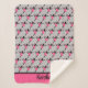 Sweet Sherpa blanket for little ballerinas features pattern of black girl ballet silhouette in pink tutu on grey background with bottom pink border to add name or other custom message