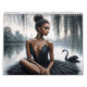 This melanin-rich calendar features a variety of artwork starring young black woman ballerinas in tutu dresses and pointe shoes. Hairstyles range from high buns to free afros, and the tutus are pink, yellow, blue, purple, green, red, black, white, and beige. The ballet dancers also vary in poses, some sitting, some standing on pointe. All are graceful and beautiful, representing hyperfeminine dark-skinned beauty and elegance. The backgrounds are mostly floral, giving them a soft, dreamy feel. Personalise this black girl calendar with your own text, or leave as is, letting the original balletcore art speak for itself.