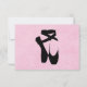 A silhouette illustration of a pair of black ballet shoes / slippers standing in the classical and contemporary ballet dancers pose up on the tips of their toes, known as en pointe. RSVP card for ballet recital or other event.