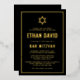 Elegant black and real gold or silver foil bar mitzvah invitations with elegant Star of David. You can change the fonts, border and background colours with the design tool. For more products, custom requests, sales, news and more, please follow us on Facebook: @chaistationery