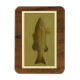 This piece of arwork will please any fish amateur. The painting represents a black bass swimming into green water. In this image, the brown borders makes it the perfect decorative art piece.