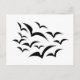 This postcard features a collection of simple images of bats flying together in a cloud pattern. The bats are black and the background is white. Kids are sure to love this cute design.