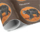 A black Bear taking a stroll through a field of bright fall coloured foliage. All on an earthy dark brown background.