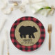 Black Bear Buffalo Plaid Lumberjack Plate can be customised with any text. Use for any occasion: lumberjack theme birthday, lumberjack wedding, bridal shower, or a lumberjack woodland rustic theme baby shower. Text has two lines so that you can easily modify the text - can also delete if desired. Click "customise it" button to open up a panel where you can adjust the font size, colour, placement, or remove.
