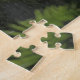 This Black Bear In a Tree jigsaw puzzle offers a serene photo of a black bear climbing a tree in a dense, misty forest, playfully peeking above the clutter of ferns and moss covered rocks on the forest floor. Soft sunlight breaks through the canopy above, casting dappled shadows from the tall forest trees. Nature lovers will adore this moment frozen in time and will appreciate this black bear puzzle as a gift, or just a purchase for fun with family and friends.