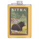 Black Bear in Forest - Sitka, Alaska Hip Flask