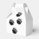 Black bear paw prints. Custom favour boxes in black and white. Original image. Party decor idea.