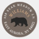 Custom black bear rustic round return address labels template. Customise with your family's name and mailing address. Click the 'personalise' button to further customise the design if you need to shrink or increase the font size, curvature, or move items. Need help? Please send us a message (before ordering), and we can add your details and send a link to purchase.