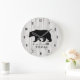 This clock features a black bear with an arrow over a farmhouse background. The numbers are black. You can add a name to the clock or delete if you do not want a name. Design ©Art by Jess 2022-Present