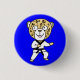 A leopard wearing a Karate Gi uniform and black belt on a pinback button.