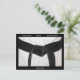 The custom Black Belt Promotion Test Invitation Postcard features a photograph of a martial arts black belt tied around a white uniform and features the words: Dedication Desire Determination Black Belt. Personalise it with the details of the blackbelt exam of your martial artist.