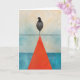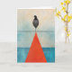 A digital art design featuring a black bird in colourful minimalist geometric abstract
