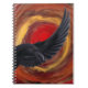 Black Bird Raven Notebook. Black Raven Journal.. The totem bird animal of many. Black raven wing against the red and yellow vibrant background. Rearrange graphics, play with colours, to fit your home decor. Great picture of a bird for those who love ravens, crows and blackbirds.