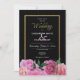Black & Black Glitter & Pink Roses Wedding Invitation