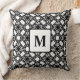Black Black White Art Deco Monogram Pattern Cushion