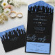 Black and blue glitter drip all in one wedding invitation. Personalise it with your event details.