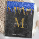 Black Blue Gold Glitter Drips Leather Monogram Planner