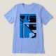 A combination of black and bright medium blue lines and shapes come together in an abstract, contemporary, geometric design, pictured here on a "blue" Bella Canvas Tri-blend (Classic Printing) t-shirt, with other styles and colours also available. Inspired by the retro MCM style and modern abstract and pop art, the design projects a bold, creative, and artistic quality for a versatile, sophisticated, and unconventional addition to your casual and everyday wear (whether at home, socialising with friends, playing sports, or running about town). The shirt design as "wearable art" also expresses a sense of your individualised style, contributing to a feeling of being "together" and creative in your personal wardrobe choices.