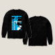 A combination of black and bright medium blue lines and shapes come together in an abstract, contemporary, geometric design, pictured here on a "solid black" long-sleeved Tri-blend t-shirt, with other styles and colours also available. Inspired by the retro MCM style and modern abstract and pop art, the design projects a bold, creative, and artistic quality for a versatile, sophisticated, and unconventional addition to your casual and everyday wear (whether at home, socialising with friends, playing sports, or running about town). The shirt design as "wearable art" also expresses a sense of your individualised style, contributing to a feeling of being "together" and creative in your personal wardrobe choices.
