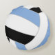 Choose your own colours! This custom colours round pillow for a volleyball player's sports room features the image of a simple volleyball that has light blue, black and white panels - personalise with the athlete's jersey number on the front - to change the colours of the volleyball's blue & black panels (front & back) and the jersey number, click the "Edit this design" button (above) - by katz_d_zynes