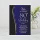 Invite your friends and loved ones with this modern black and blue surprise 80th birthday party invitation. The customisable text area in this invitation template allows you to effortlessly include all the necessary details for your special birthday celebration, including the date, time, venue, and RSVP information. A variety of paper types and corner styles are available for your unique invitations, along with the option to download if you prefer a digital format.